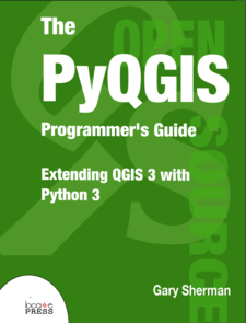 I recently read through Gary Sherman’s The PyQGIS Programmer’s Guide: Extending QGIS 3 with Python 3 (Locate Press, 2018). If you browse the documentation for PyQGIS you may find it is not particularly inviting to newcomers. I think Sherman does a great job of introducing PyQGIS to new users, although only for readers who are already familiar with GIS and QGIS.